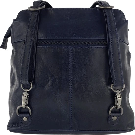 Een handige leren tas van het merk Arrigo. Deze multifunctionele tas kan je gebruiken als rugtas, crossbody tas, handtas of schoudertas. Deze tas is goed afgesloten omdat dat de schouderbanden bovenop kruis links lopen en daardoor niet makkelijk open te krijgen is, extra veilig dus.