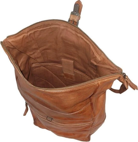 Trendy leren rugtas uit de Cow Lavato serie van Bear Design. Het hoofdvak sluit middels een ritssluiting en kan omgeslagen worden en vervolgens met een magneetslot vastgezet worden. In het ruime hoofdvak zit een gewatteerd vak van 32 x 25 cm voor een iPad of 13 inch tablet. Tevens zit in het hoofdvak een kleine organizer bestaande uit een ritsvak, steekvak en 3 pennenlussen. Op de voor- én achterkant van de rugtas zit een ritsvak wat handig is voor spullen die je snel bij de hand wilt hebben. De twee verstelbare schouderbanden zijn verstelbaar en het rugpand is gewatteerd wat zorgt voor optimaal draagcomfort. Aan de bovenkant van de rugtas zit een handvat/lus waarmee je de tas makkelijk en snel op kunt pakken.