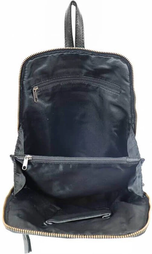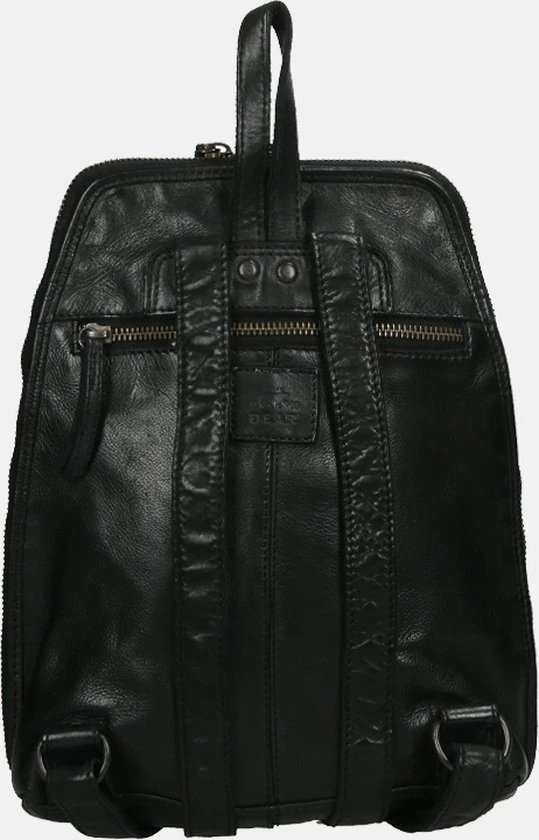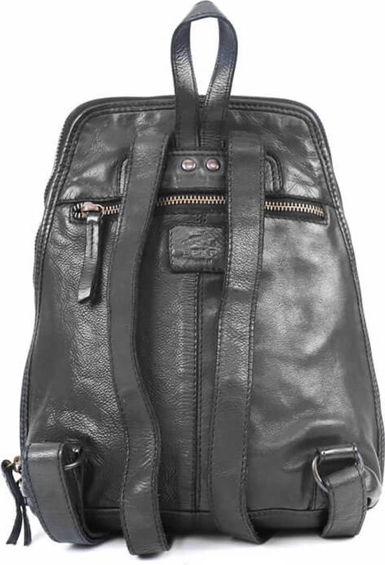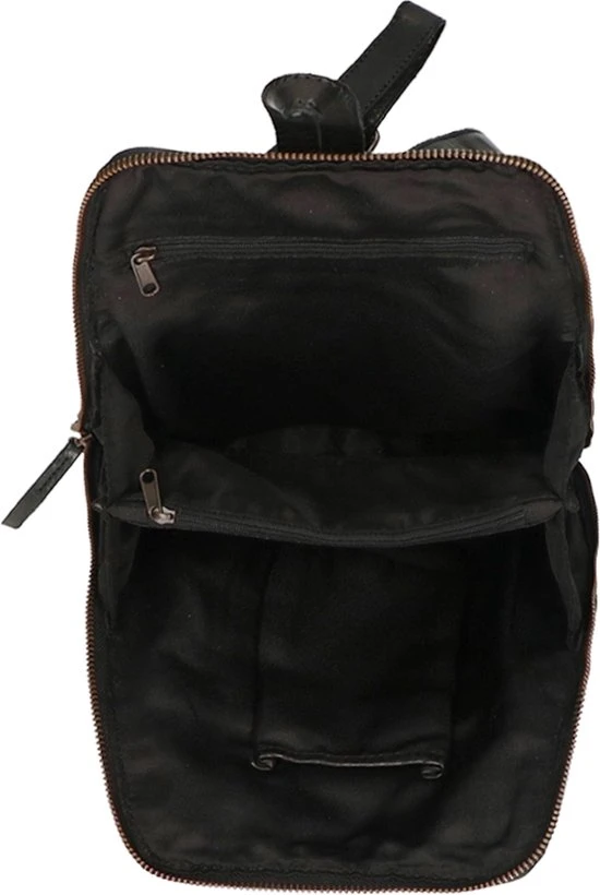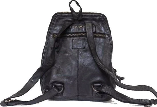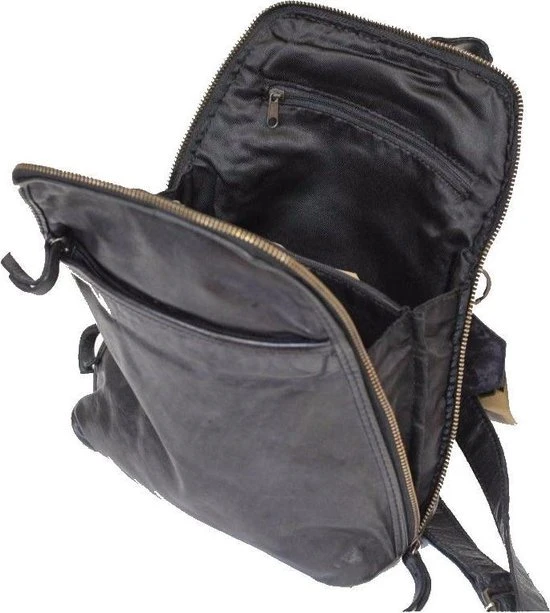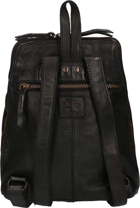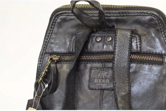 Mooie kleine tot middelgrote leren rugtas uit de Cow Lavato Collection van Bear Design die aan de onderkant wat breder uitloopt. Het model is gemaakt van prachtig rundleer. Het ruime hoofdvak heeft een rits die opent over de gehele zij- en bovenkant van de tas. Hierdoor heb je goed overzicht en toegang tot je spullen. Binnenin de tas tref je een 2 vaks verdeling aan. Het tussenschot is tevens een ritsvak. Binnein de tas zit een ritsvakje en een telefoonvakje. Op de voorzijde én op de achterzijde van de rugtas zit een ritsvak voor spullen die je snel bij de hand wilt hebben. Aan de bovenkant zit een handvat/lus waarmee je de rugtas makkelijk en snel op kunt pakken of even in de hand kunt dragen. De twee schouderbanden zijn verstelbaar.