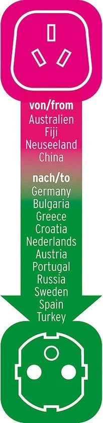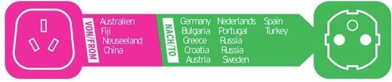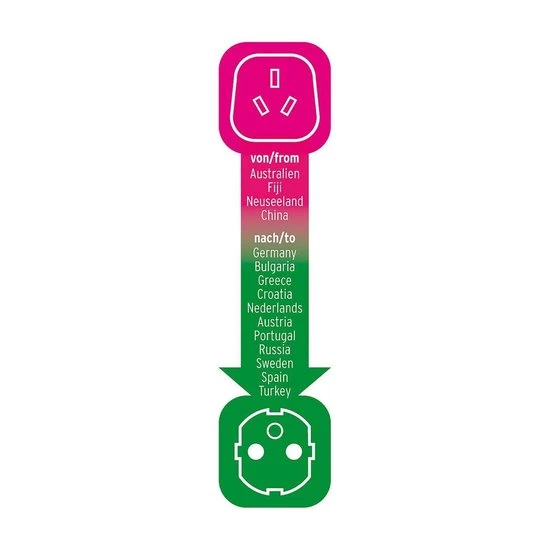 - Met deze Brennenstuhl reisstekker kun je apparaten uit Australië, Nieuw-Zeeland, de Fiji eilanden en China gebruiken in landen met een Nederlandse stopcontactaansluiting (dus ook in bv. Frankrijk, België, Duitsland, Spanje, etc.).