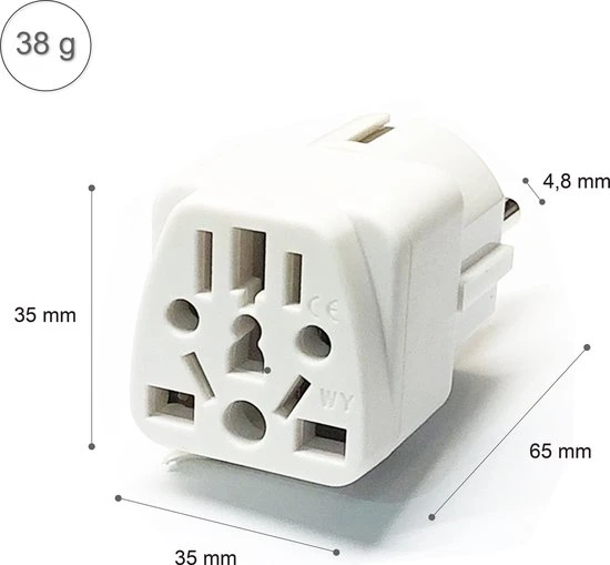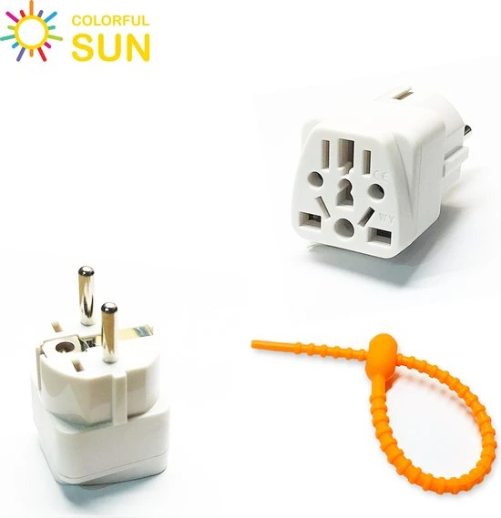 - Artikelnaam: Colorful Sun® Universele Wereldstekker – Reisstekker type E & F – UK / US / CN / AU / FR / JP / IT naar EU/ID/KR – 1 Stuk – Engeland, Schotland(UK), Amerika VS, China, Australië, Frankrijk, Japan, Italië naar Europa(EU), Indonesië en Korea – Wit