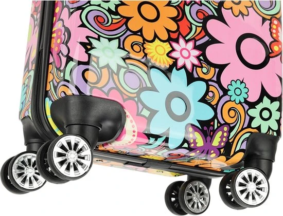 Mooie hardschalen, glans ABS handbagage koffer met dubbele velgwielen en cijferslot. Koffer is voorzien van een ritssluiting rondom. Binnenin gevoerd met stof en voorzien van tussenschot met ritssluiting, ritsvakjes en spanbanden. Koffer is op slot te zetten middels een vast cijferslot op de zijkant van de koffer. Handvat bovenop en voorzien van comfortabel 4-wiel systeem.
