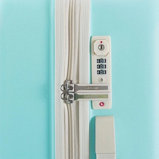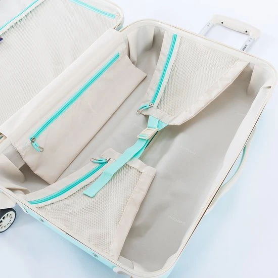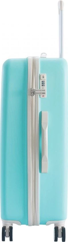 Grote, hardschalen ABS koffer in mooie pastel kleur. Koffer is voorzien van een rits rondom die op slot te zetten is middels een vast TSA slot op de zijkant van de koffer. Binnenin gevoerd en voorzien van meerdere insteek- en ritsvakken voor het overzichtelijk opbergen van uw bagage.