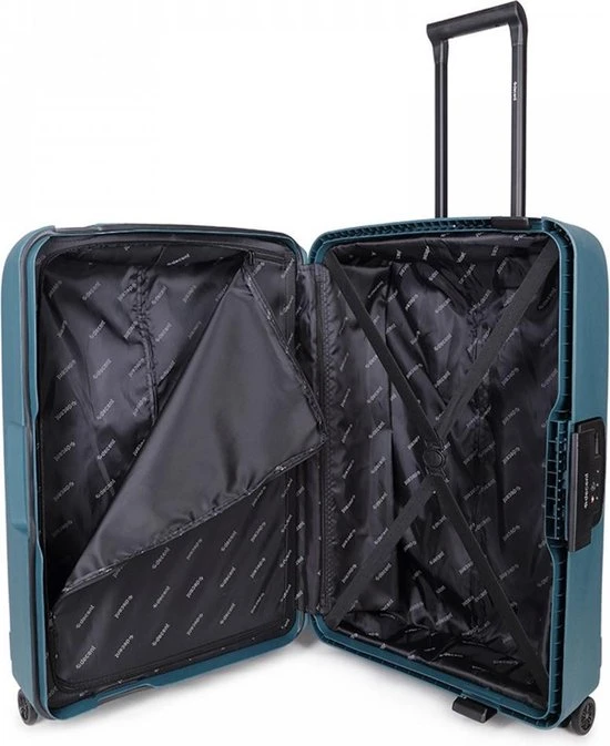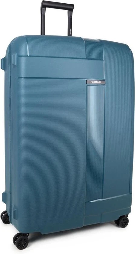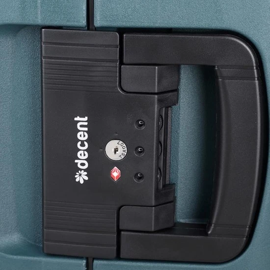 Middelgrote polypropyleen hardschalen koffer uit de Transit serie van het merk Decent. De koffer is rondom voorzien van drie kliksloten. Op de boven-en onderkant zitten sloten die u vastklikt en op de zijkant zit het hoofdslot dat een TSA cijferslot is. De koffer heeft een zwarte voering, een tussenschot met rits, een extra ritsvak en is voorzien van spanbanden. Handvat op bovenkant en zijkant en voorzien van een comfortabel dubbel 4-wiel systeem.
