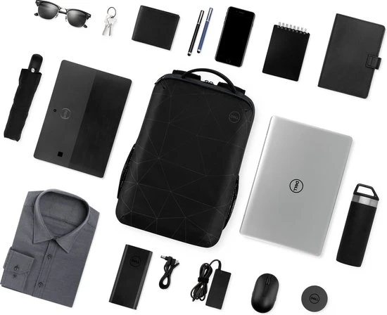 De Dell Essential rugzak 15 (ES1520P) is ontworpen met reflecterende afdrukken aan de voorkant, waardoor deze opvalt in omstandigheden met weinig licht en oplicht als er rechtstreeks licht op schijnt, zodat u beter zichtbaar bent.