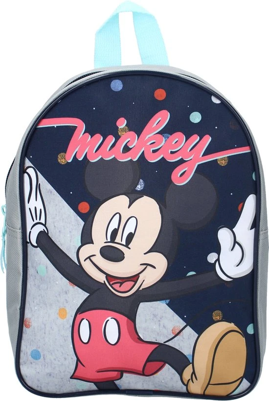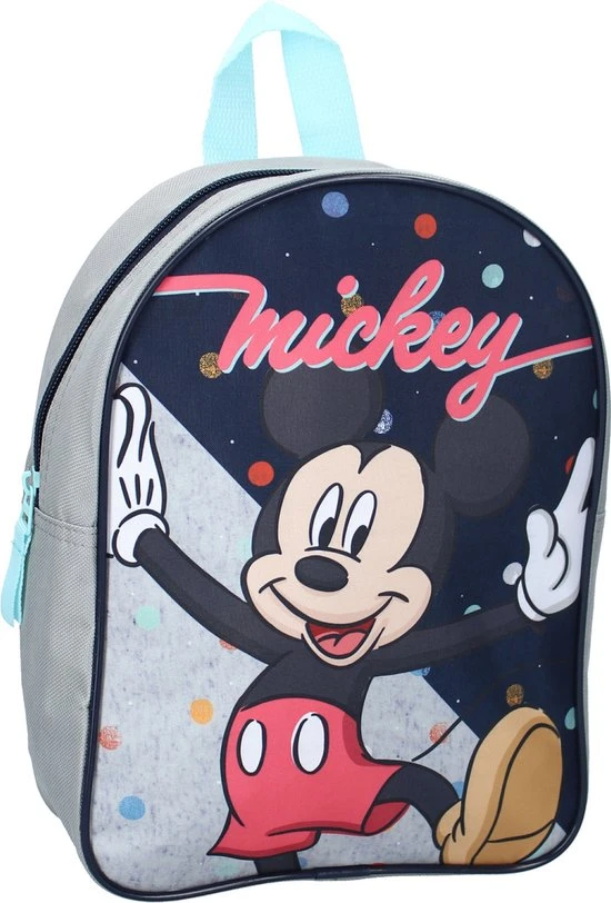 Heb je deze rugzak van Disney Fashion in huis? Dan wil je kindje hem vast overal mee naartoe nemen. Dat komt natuurlijk door Mickey Mouse, die op de voorkant van de grijze rugtas je kindje vrolijk aankijkt met een grote glimlach. Mickey danst en is omringd door kleurrijke confetti stippen. De comfortabele schouderbanden van de rugzak zijn verstelbaar en de tas is ook makkelijk mee te nemen aan de grote lus aan de bovenkant.