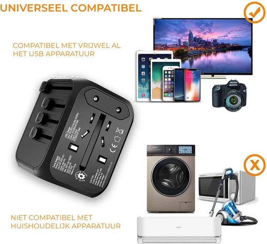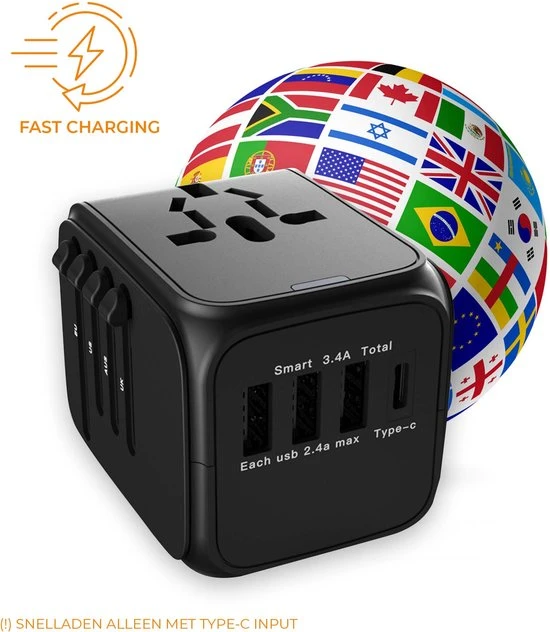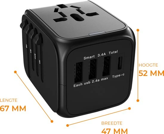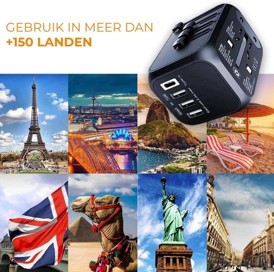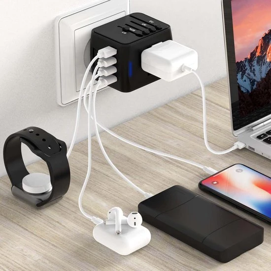 Reis jij graag de wereld rond? Geniet van de meest universele wereldstekker ontworpen voor het reizen met gemak en snelheid. Het compacte design zorgt dat de stekker zelfs met minste ruimte over, mee te nemen is. Gebruik de stekker in meer dan 150 landen en laad jouw apparatuur op met de type-c snel laad input. Bestel vandaag nog jouw wereldstekker voor op reis en laad tot wel vijf apparaten tegelijkertijd op!