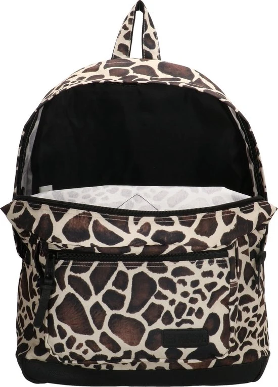 Helemaal hip met een giraffenprint! Beestachtig goed is deze Enrico Benetti rugzak van de serie Londen. De rugtas heeft een apart vak voorzien van rits voor je laptop (15″). Extra stevig en veilig! Het grote vak biedt veel ruimte voor je (school)spullen en het voorvak is voorzien van twee ritsen, om je kleinere spullen extra slim op te bergen. De rugtas is gemaakt van stevig polyester en afgewerkt met kunstleren details. Deze rugtassen met print zijn verkrijgbaar in meerdere formaten. Enrico Benetti heeft binnen de Londen serie verschillende soorten en maten tassen beschikbaar in allerlei dierenprints!