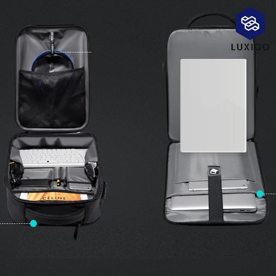 Met de handige externe USB-oplaadpoort kun je telefoon eenvoudig onderweg opladen. Zo zit jij nooit meer met een lege telefoon, en heb jij altijd een oplader bij de hand! De rugtas biedt zo optimale veiligheid en efficientie, zelfs onderweg! Berg jouw oplaadsnoer of oortjes eenvoudig op door ze aan de handige gesp in het hoofdvak te bevestigen!