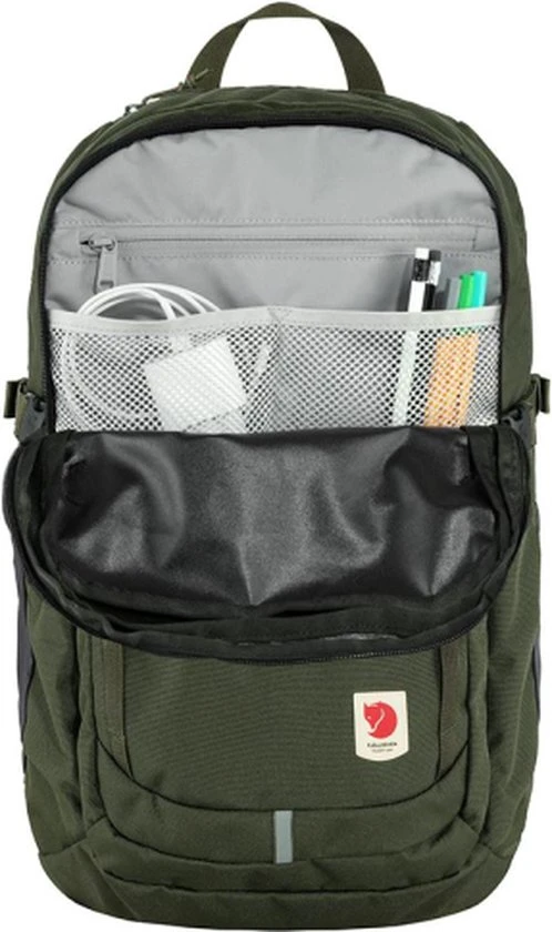 Outdoor rugzakken doen het ook goed in de stad. Daarom is deze Fjällräven Skule 28 in het groen goed om in huis te hebben! Het koord aan de voorkant van de rugzak geeft een echt outdoor feeling. De tas is gemaakt van waterafstotend materiaal, wat prettig is in de regen. Voor het draagcomfort zijn de schouderbanden voorzien van wattering. Het borstbandje is ook prettig. Voor het hoofdvak zit een ruim ritsvak en aan de bovenkant een kleinere. De beide zijkanten hebben steekvakken die zich perfect dienen voor het meenemen van drinkflessen.