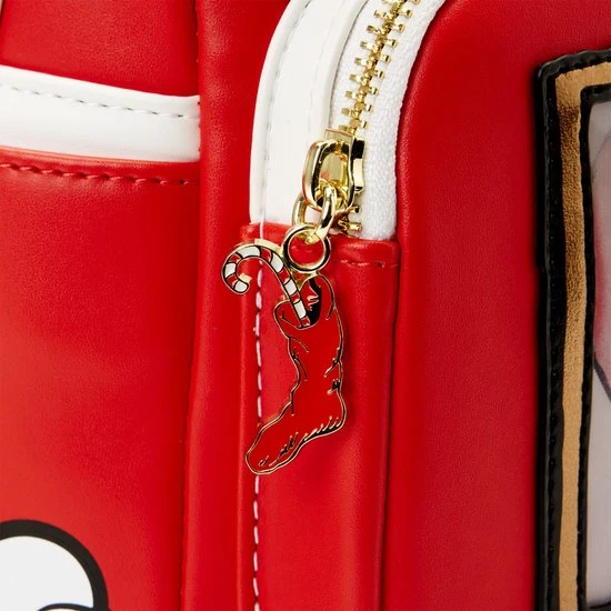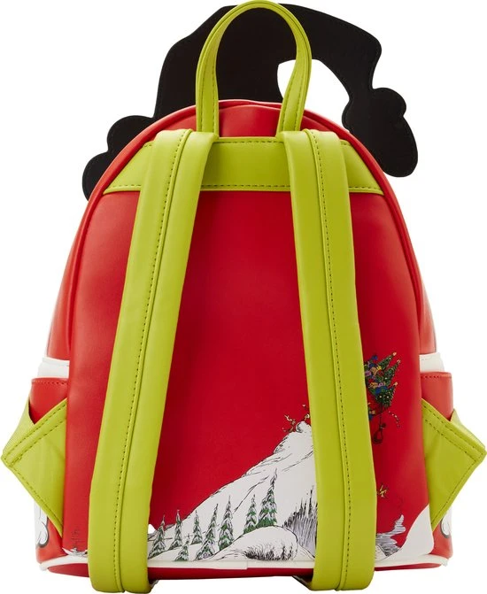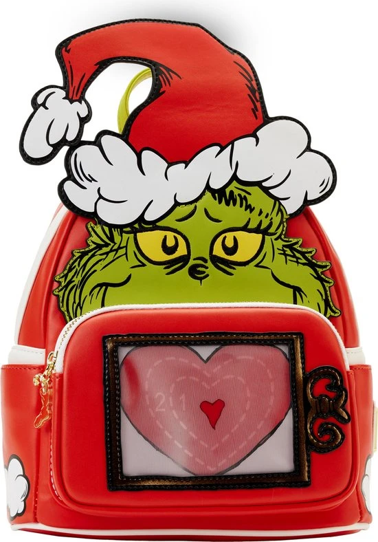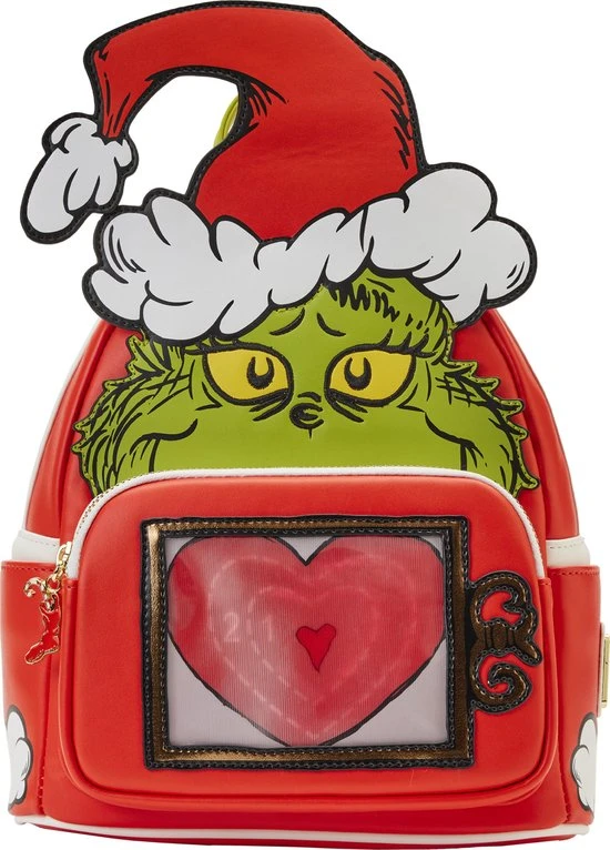 Deze knorrige groene mopperkont heeft de ware betekenis van Kerstmis ontdekt, en het heeft zijn ijzige hart ontdooid! De Loungefly Grinch Lenticular Heart Mini Backpack toont de Grinch in een zelfgemaakte pet om zich te vermommen als Sint-Nick. Als je de tas in het licht kantelt, zie je het kleine hartje van de Grinch, dat drie maten groter wordt met lenticulaire details! Een emaille ritsbedeltje van een vakantiekous voegt wat extra feestelijke flair toe. Op de achterkant van de tas gebruikt de Grinch de kracht van tien Grinches (plus twee) om te voorkomen dat zijn overladen slee van de berg Crumpit valt. Dit hartverwarmende accessoire voegt een vleugje nostalgie toe aan elke outfit en houdt je schatten veilig terwijl je hand in hand Kerstmis verwelkomt.