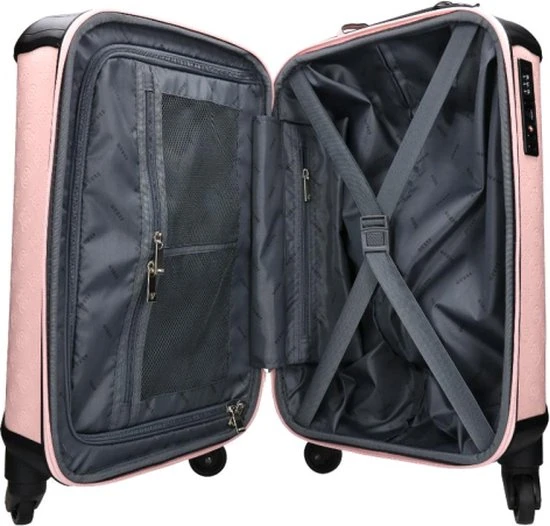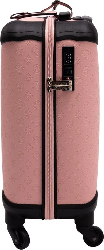 Te mooi voor de laadruimte, dus neem het vooral mee het vliegtuig in! De Guess Wilder koffer in het roze is naast je handbagage ook een waar fashion item. Het monogram patroon van de tassen is ook overgeslagen op de koffers van het merk. De koffer beschikt over vier wielen, een handvat, een trekstang, een adreslabel en een TSA-cijferslot.