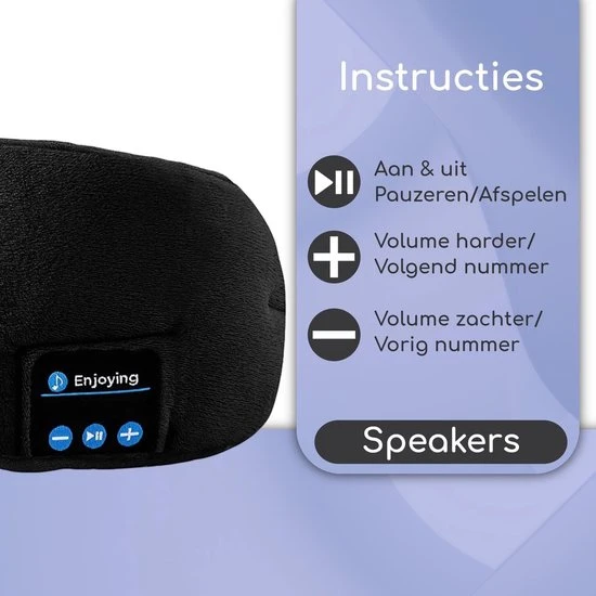 Het slaapmasker is makkelijk in gebruik, na twee uur opladen kunt u acht uur muziek luisteren. Je kunt het masker gebruiken als je gaat slapen, maar ook in het vliegtuig, in de pauze, tijdens de yoga, tijdens het mediteren of als je even tot jezelf wil komen. Het masker is voorzien van een zeer prettige stof. De stof voelt zacht aan op de huid en makkelijk schoon te maken. Omdat het slaapmasker makkelijk te verstellen is kan je het aanpassen naar de pasvorm die voor jouw perfect is.