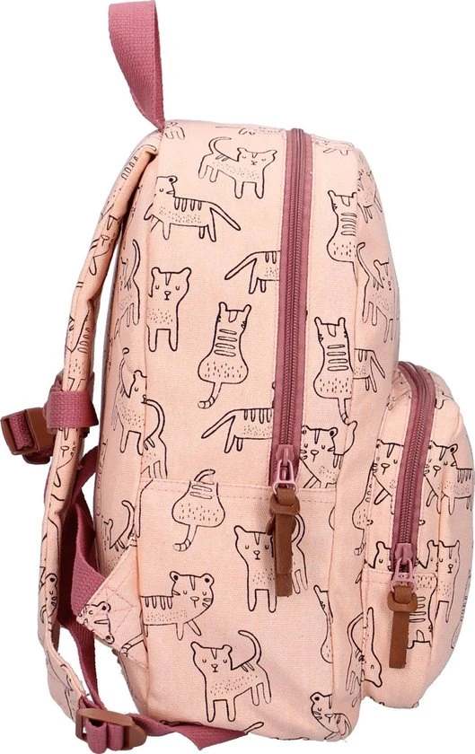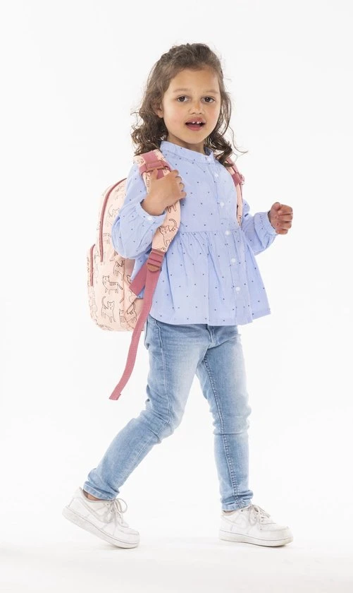 De Kidzroom Animal Academy collectie bestaat uit hippe kinderrugzakken in mooie lichte kleuren met een dierenprintje! Deze kinderrugzak is uitgevoerd in peach/roze polyester met een katten print. De rugzak heeft een ruim hoofdvak en een voorvakje. Verder kan de rugzak makkelijk worden opgehangen met de ophanglus en heeft de rugzak comfortabele schouderbanden die versteld kunnen worden.