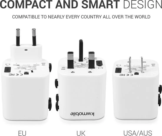 Met de kwmobile reisadapter voel je je thuis op vakantie. Laad al je apparaten op in meer dan 150 landen.