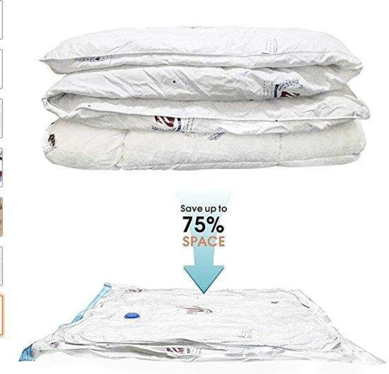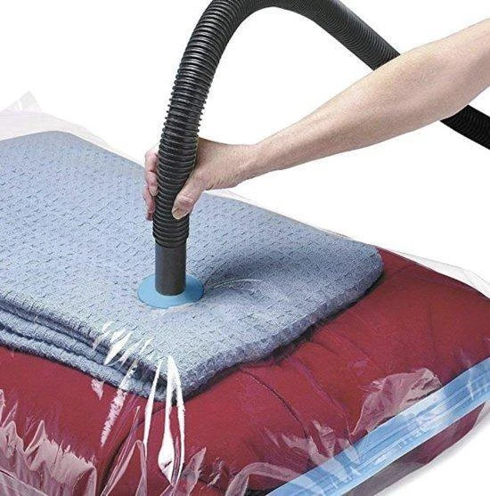 Met deze vacuüm opbergzakken creëert u in een mum van tijd een schat aan ruimte in uw kasten, opbergruimtes of koffer. Je kleding, dekens en jassen opruimen? U verdrievoudigt uw opslagruimte met deze unieke set vacuüm opbergzakken. Bovendien zijn de opbergzakken luchtdicht, waterdicht en herbruikbaar. De inhoud wordt daarom effectief gecomprimeerd, optimaal beschermd en de items blijven netjes op hun plaats georganiseerd.