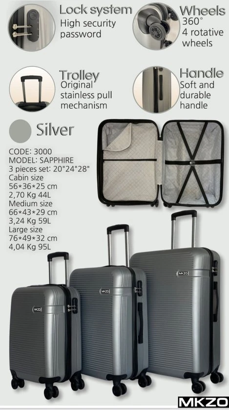 Deze kofferset heeft een sterke, harde behuizing van duurzaam ABS en veiligheidssloten om je spullen veilig te bewaren. De spanbanden garanderen dat je spullen goed georganiseerd en op hun plaats zitten. Elke trolley is uitgerust met een draaghendel aan de bovenzijde en 4 draaiende wielen. Bovendien is deze kofferset zeer duurzaam en lichtgewicht.