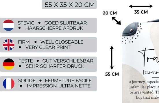 Ben je op zoek naar een hoogwaardige en trendy koffer welke ideaal is als handbagage tijdens jouw volgende reis? Dan is deze koffer van MuchoWow® een absolute must-have! De koffer is speciaal ontworpen met een transparante voorkant waardoor de print van je koffer nooit zal beschadigen. Daarnaast is het mogelijk om de print van de koffer te verwisselen. Ook beschikt het over een subliem afwerkingsniveau, wat resulteert in een modieuze uitstraling.