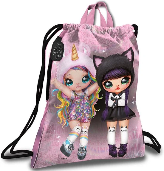 Na! Na! Na! Surprise Gymbag. Een superleuke gymtas met de modebewuste meiden van Na!Na!Na! Surprise. Dat is nog eens leuk shoppen! Of gebruik de tas voor een dagje weg of de gymles op school. De mogelijkheden zijn eindeloos. Een leuke bijkomstigheid: de tas kan ook aan de hand meegenomen worden én er is een extra opbergvakje met rits voor je kleine spullen zoals portemonnee en sleutels. Een geweldig cadeau-idee voor een verjaardag of de feestdagen.