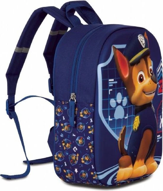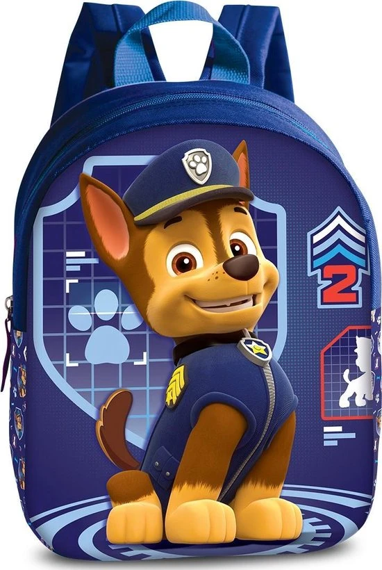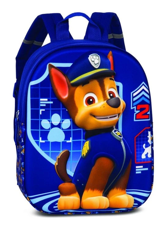 PAW Patrol 3D Chase peuter/kleuter rugzak. Met dit tasje steel je gegarandeerd de show! Op de voorkant staat niet namelijk zomaar een afbeelding, maar Chase is volledig 3D. Heel cool! Dit is een ideaal ‘eerste tasje’ voor kinderen die naar de peuterspeelzaal of kleuterklas gaan. Wat een leuk cadeau!