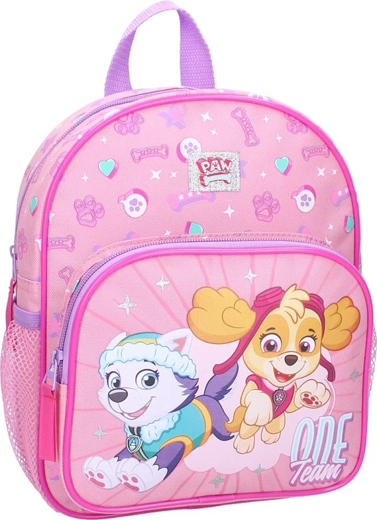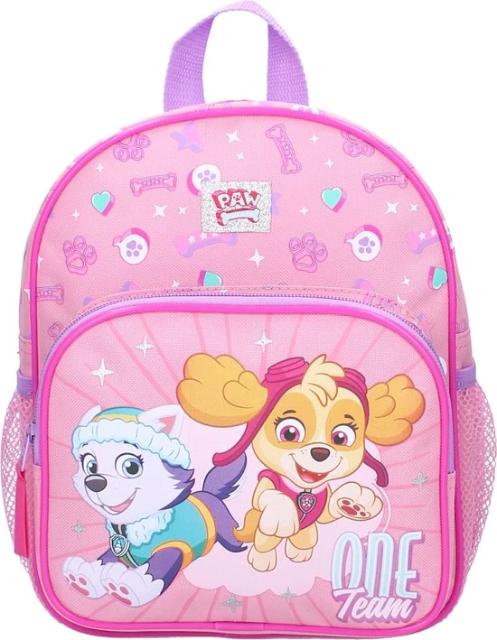 Skye en Everest staan voor je klaar op deze rugzak van PAW Patrol! Zijn deze hondjes de favoriet van jouw kleintje? Dan is deze rugzak uit de Free To Be Me collectie van PAW Patrol misschien wel een perfecte match! De roze rugzak met Skye en Everest is afgewerkt met paarse details en kleine opdrukken, zoals hondenpootjes, hartjes, sterren en botjes. De tas heeft een ruim hoofdcompartiment en een ruim voorvak. De schouderbanden zijn verstelbaar en met de lus aan de bovenzijde is de tas ook eenvoudig te dragen.