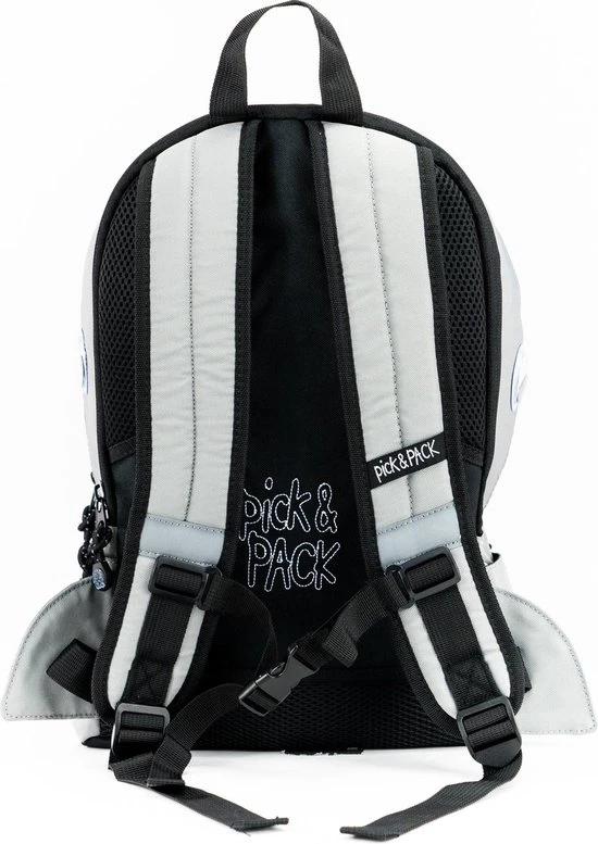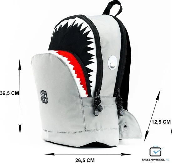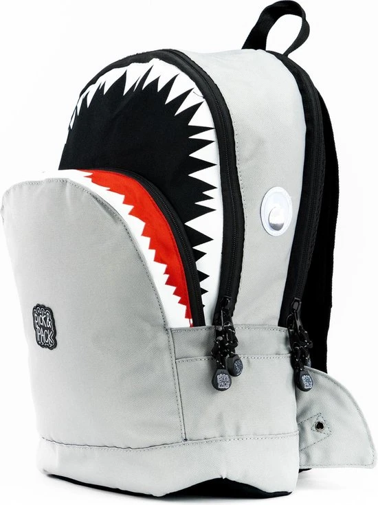 De Shark Shape Backpack M is een stoere rugzak van Pick & Pack in de vorm van een haai speciaal ontwikkeld voor kinderen. De rugzak is hoogwaardige kwaliteit, gemaakt van recycled polyester en helemaal gevoerd. Deze rugzak heeft handige opbergmogelijkheden en er is voldoende plek voor een lunchdoos, gymspullen en er zit een houder voor je drinkbeker in. Daarnaast is er een tweede ritsvak voor een 13inch laptop of ipad. De schouderbanden zijn verstevigd en verstelbaar. Hierdoor voelen ze comfortabel aan en stel je de rugzak eenvoudig af op de gewenste lengte. Aan de bovenzijde zit een hengsel waaraan je kind de tas op school gemakkelijk kan ophangen aan de kapstok.