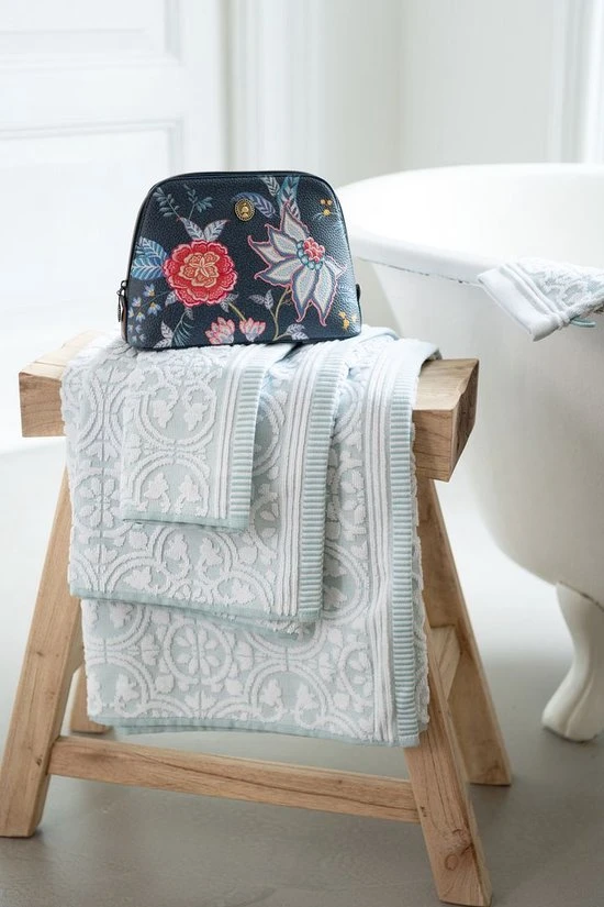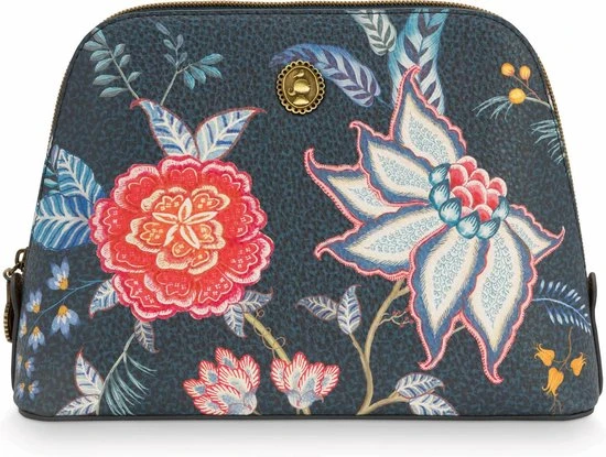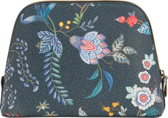 In de Flower Festival make-up tas van Pip Studio kun je handig je essentiële beauty producten opbergen of meenemen. Het medium grote driehoekige tasje is ideaal voor als je onderweg je make-up wil doen. Deze vrolijke etui is gemaakt van waterafstotend imitatieleer, daardoor is deze donkerblauwe toilettas goed schoon te maken. Dit item is geheel gemaakt van pu, een kunstmatig en daarmee duurzaam alternatief voor leer.
