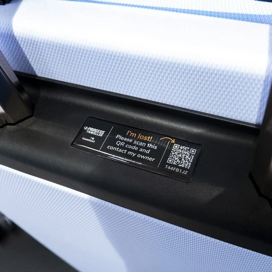 Het zal je maar gebeuren. Je gaat op vakantie en je verliest je koffer met al je persoonlijke spullen! Een nieuw snufje wat toegevoegd is aan de PT-01 Deluxe is de Itemlost code welke zich bevindt onder de hendel in het trolley systeem. Registreren is eenvoudig en als je koffer kwijt bent geraakt, kan de eerlijke vinder de QR code scannen en direct anoniem contact met je opnemen. Hierdoor is het dus niet meer nodig om een tag aan je koffer te hangen met jouw persoonlijke informatie.