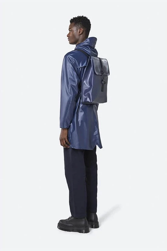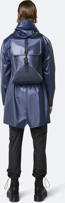 Rucksack spreekt dezelfde designtaal als de kenmerkende Backpack van Rains, maar heeft Rains’ kenmerkende TPU-band aan de voorkant en de karabijnhaakgespsluiting op een rechthoekig model. Deze tas is gemaakt in Rains’ waterdichte PU en heeft extra drukknoppen aan de bovensluiting om de inhoud van de tas beter droog te houden. Rucksack heeft ook een laptopcompartiment dat geschikt is voor zowel een 13” als een 15” laptop.