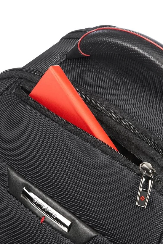 De nieuwste generatie van de Samsonite Business bestseller heeft een nieuwe look gekregen om te blijven voldoen aan alle wensen van wie vaak op zakenreis gaat. De collectie is nu lichter, uitgerust met nog meer functies dan zijn voorganger en voorzien van een handige organisatie binnenin. Het vernieuwde design met groter voorvak en rode, verticale accenten maakt Pro-DLX5 functioneler en opvallender dan ooit. � Extra sterk ballistisch nylon en gewatteerd laptop-/tabletcompartiment. � Vak met RFID-bescherming. � Handig ritsvak bovenaan. � Met het Easy Pass-systeem blijven al uw elektronische apparaten gewoon in uw tas zitten terwijl u ze oplaadt. Uitgerust met een speciaal vak voor uw powerbank aan de binnenzijde. � Alle items met wielen zijn voorzien van een To Go Side PocketTM voor kleine spullen. � De Mobile Office heeft een uiterst veilig Quick Access compartiment bovenaan, een aanpasbaar laptopvak en een Checkpoint Wet PocketTM met vochtafstotende voering.