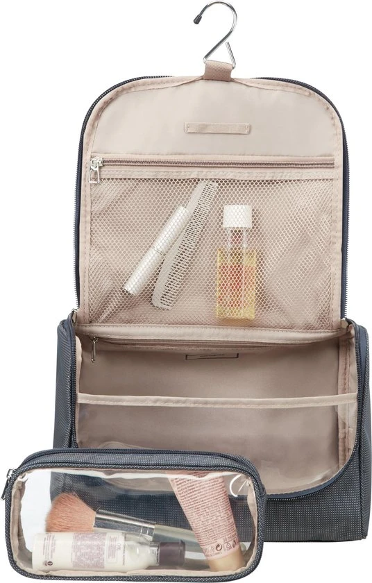 Deze Samsonite toilettas in de kleur grijs behoort tot de Cosmix collectie. Het neutrale design, de duurzame stof en de vele praktische details maken van deze collectie een absolute must have. De toilettas sluit met een ritssluiting en heeft een ruimt hoofdcompartiment. In de toilettas zitten nog twee ritsvakken en zes elastieken lussen, er is dus genoeg plek om al jouw belangrijke spullen op te bergen!
