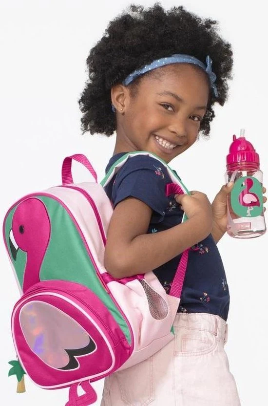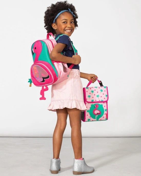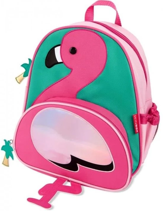 Rugzak of schooltas met een leuke flamingo in het roos met groen, van het merk Skip Hop.Deze Zoo Pack rugzak is de ideale rugzak voor kleine bengels. Fun en functioneel! De leuke details en duurzame materialen maken dit de perfecte on-the-go-rugzak voor jouw kids! Met genoeg plaats voor al de spulletjes die je kleuter nodig heeft voor een drukke dag vol plezier en avontuur.