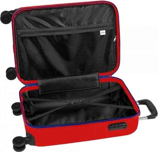 SpiderMan Trolley, Mask. Mooie trolley voor de fans van Spider-Man! Een geweldige hardcase trolley koffer met een opvallende print van het gezicht van onze favoriete superheld. Dit rolkoffertje is ideaal als handbagage in het vliegtuig of als weekendkoffertje op een roadtrip. Voorzien van 4 zwenkwielen, dus het artikel is gemakkelijk rond te rijden. Binnenin zitten compartimenten om spullen goed en veilig op te bergen, zoals elastiek en een vak met ritssluiting. Ga goed voorbereid op reis met deze koffer! Een geweldig cadeau voor een verjaardag of de feestdagen.