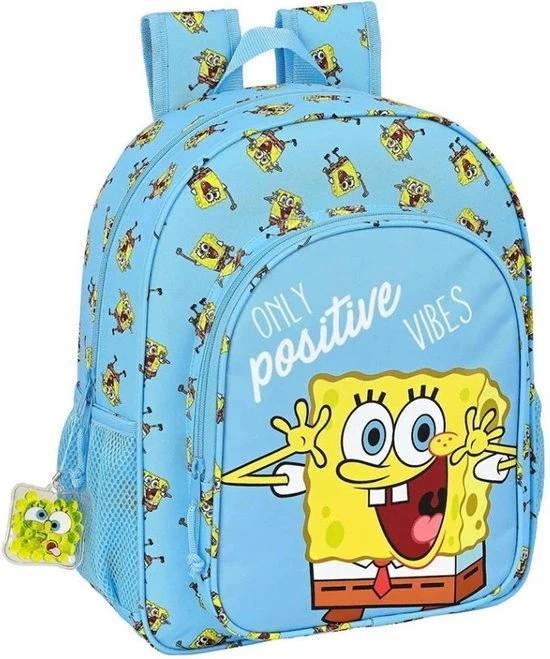 SpongeBob Rugzak, Positive Vibes. De altijd vrolijke Sponge Bob zorgt voor een positieve sfeer! En helemaal op deze leuke rugtas. Zeer geschikt voor school of een dagje uit. De tas is voorzien van twee vakken met een rits en twee open zijvakken voor een drinkflesje. Het leuke dessin op de blauwe achtergrond maken de tas helemaal af. Een fantastisch cadeau voor elke fan van Sponge-Bob!