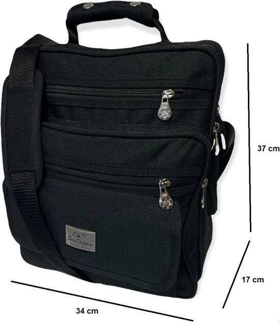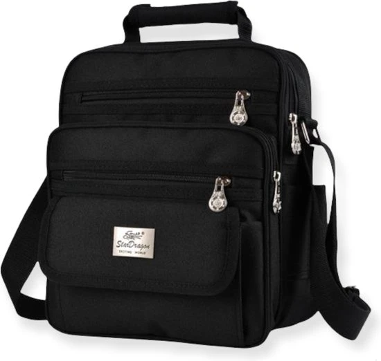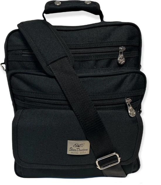 De Star Dragon schoudertas heeft 2 grote hoofdvakken die goed afsluitbaar zijn met een rits. Verder heeft de tas 3 handige rits vakken aan de voorkant. Deze handige kleine ritsvakjes zijn ideaal voor het opbergen van je sleutels of je mobielie telefoon. Ook zit er aan de achterkant nog een rits vak. Aan de bovenkant van de tas een kort handvat zodat je deze ook eenvoudig in de hand kan dragen. Dit is de perfecte tas voor zowel heren als voor vrouwen met genoeg opbergmogelijkheden. Let op dit is de grote variant de afmetingen zijn: 37 x 30 x 17 cm.