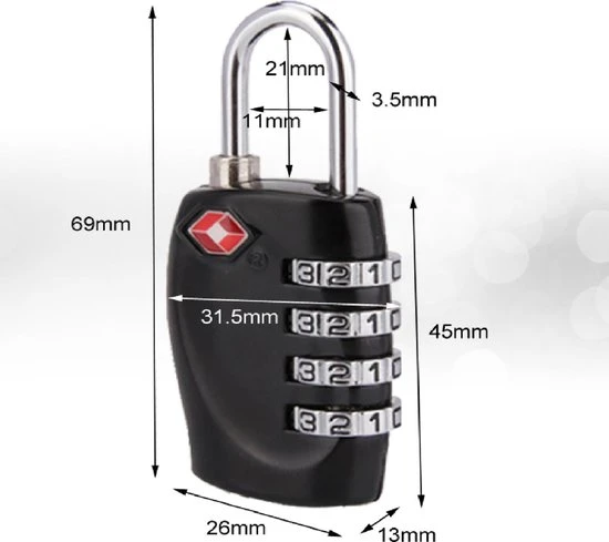 Met dit TSA gecertificeerde 4-cijferige stevige en sterke cijferslot komen uw spullen zonder zorgen aan op hun eindbestemming.