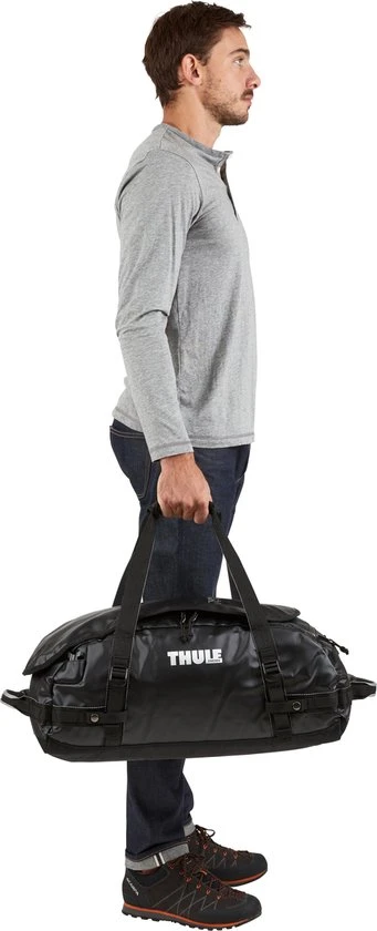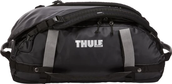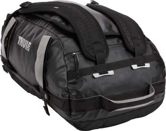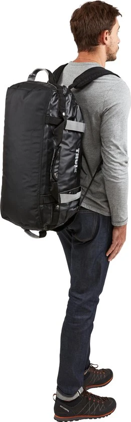 Een robuuste, weerbestendige duffel met afneembare rugzakbanden en een brede mondopening.