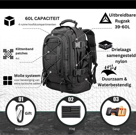 Op zoek naar de perfecte backpack/Rugzak? Zoek niet verder! deze grote comfortabele rugzak met een capaciteit van 60 liter is jouw ideale reismaatje! Het maakt niet uit waar je heen gaat, met deze rugzak heb je al jouw benodigdheden altijd bij de hand! De backpack is zowel geschikt om te reizen, wandelen, kamperen, klimmen en voor andere outdoor activiteiten.