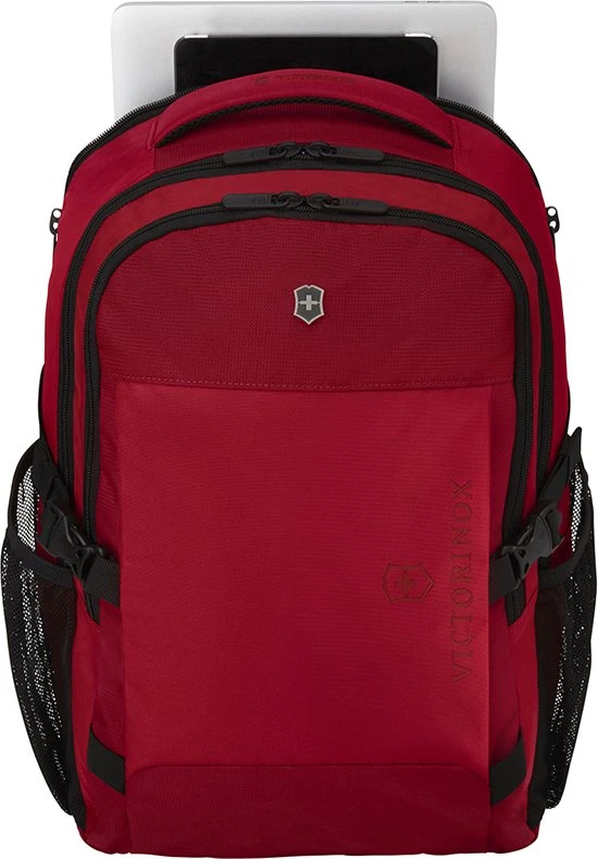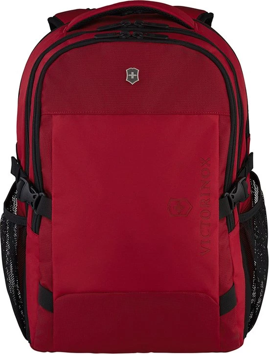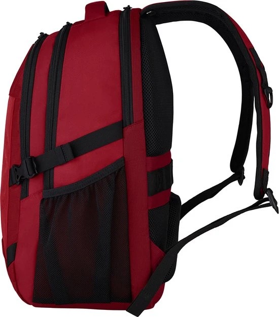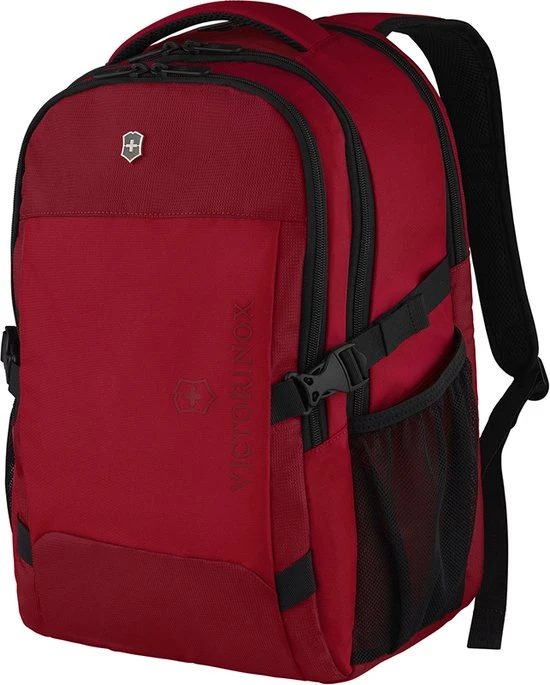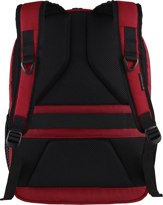 Laptoprugtas uit de Vx Sport Evo serie van Victorinox. De Vx Sport serie van Victorinox werd met het oog op duurzaamheid herzien en daaruit is de Vx Sport Evo serie ontstaan. Gemaakt van 100% 900D Polyester, een mega sterk, waterafstotend en duurzaam materiaal. Bij Victorinox denk je niet alleen aan duurzaamheid maar net zo goed aan praktisch. De Daypack is dan ook handig ingericht met een gewatteerd 16″ laptopvak en een extra tablet vak. Multifunctionele zijvakjes en een georganiseerd voorvak voor kleinere spullen. Het rugpaneel ademt door de ‘flow channels’ en de schouderbanden zijn dik gewatteerd voor extra comfort bij zware belading. De tas kan met de banden aan de zijkant in diepte worden aangepast aan de inhoud. De straps zorgen ook voor een langere levensduur van de ritsen omdat er minder druk op komt te staan. De smart-sleeve achterop maakt dat de tas gemakkelijk op een trolley vervoerd kan worden. Al met al een daypack die heel wat jaartjes mee kan en mooi blijft.